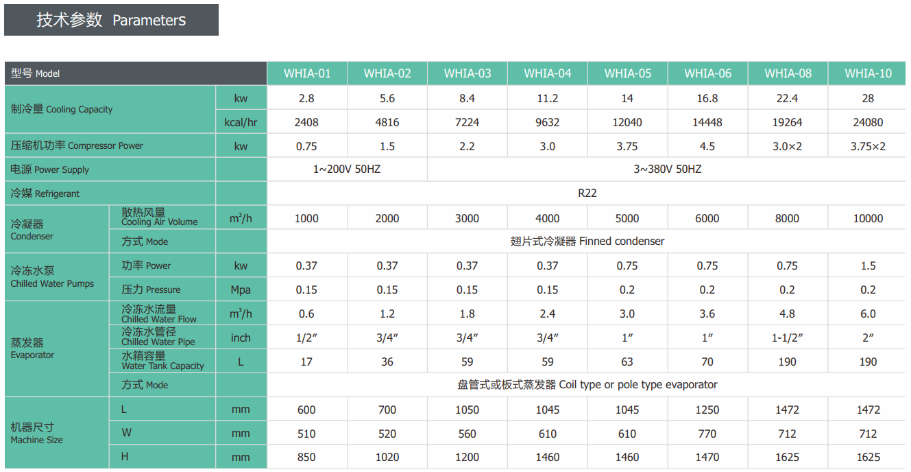 ◆ 箱型風冷式冷水機可廣泛應(yīng)用於各個行業:例(lì)如塑膠行業中的注塑/吹塑(sù)/吹瓶/擠出/吹膜(mó),冷水(shuǐ)機可以精確的控(kòng)製相關模具或容器內(nèi)的溫度以縮短成型周期,加速產品定型,使產品不變形(xíng)及縮水,還可以提高塑膠產品(pǐn)表麵的光潔度及透視率。也適用於冷卻:UV印刷,數控機床,電鍍,電泳,超聲波清洗,欽料及啤灑行業,醫療(liáo)設備,激光焊接等其它水需要降溫的行業。