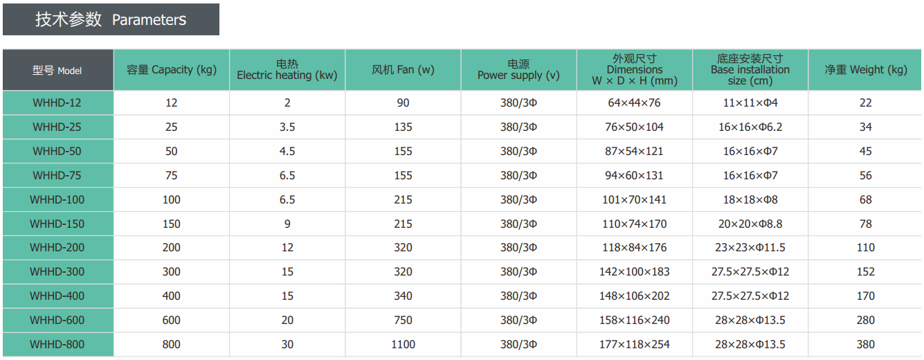 ◆ Another 50-1500kg high temperature type is available: double-layermaterial barrel, stainless steel electric heating tube, heat dissipation electricheating tube, high temperature fan.