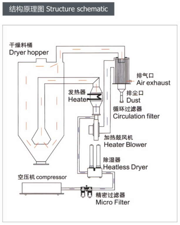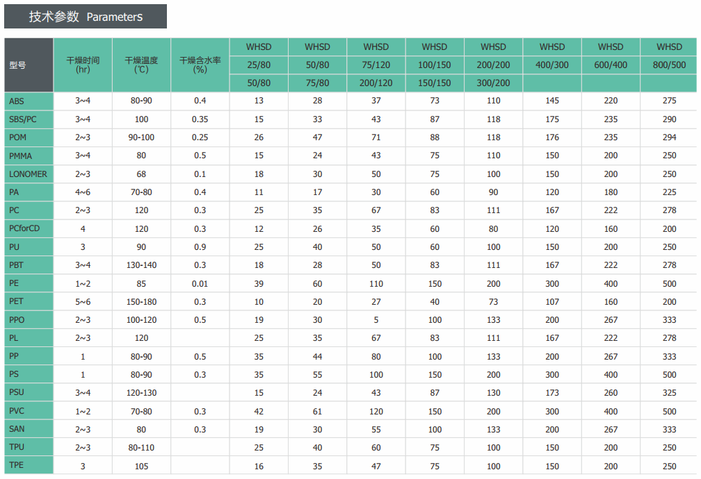 ◆ Dehumidification and drying temperature and conveying are operated independently;