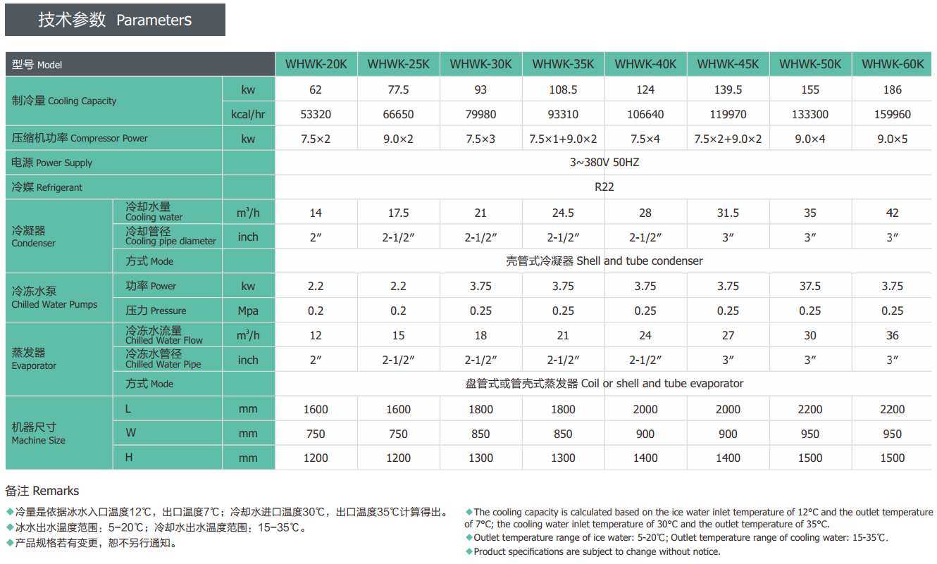 ◆ 該機(jī)型使用與(yǔ)箱型水冷式冷水機較為相同(tóng),隻是需要配備機外保溫水箱或水池/水槽及相應冷凍(dòng)水循環水(shuǐ)泵才能正(zhèng)常使用(yòng)。